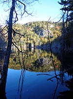 The sun may have disappeared in the woods, but it still casts its waning glow on the cliffs overlooking rte. 73.